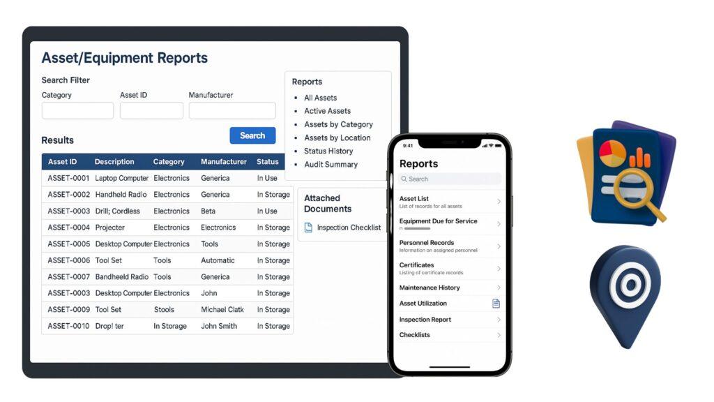 Database of facility and industrial assets, including asset data, photos, current locations, statuses and upcoming tasks.