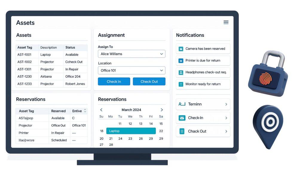 - Check-in and check-out assets and equipment for short term usage or long-term assignments